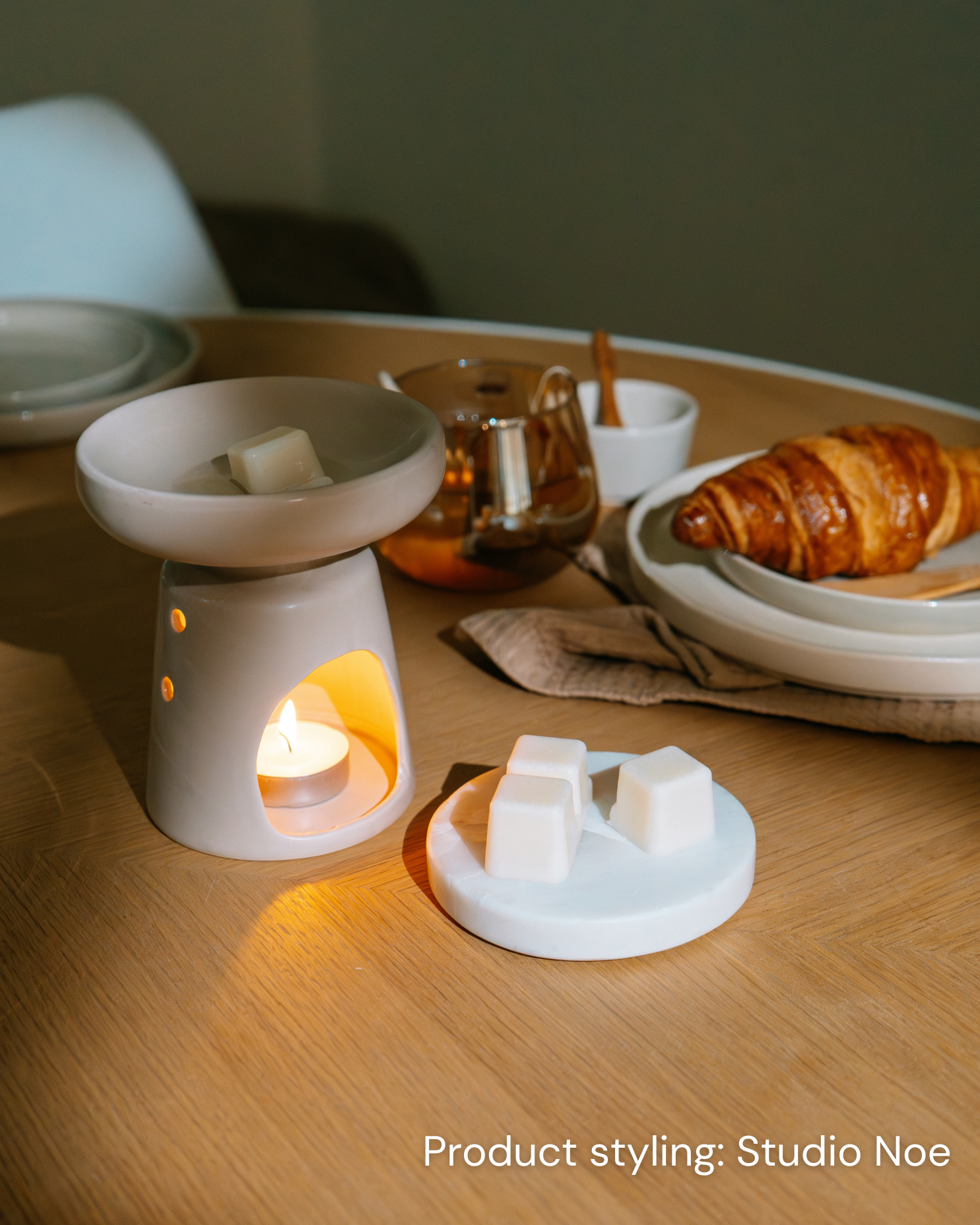 Leg een waxmelt in de brander, steek een 4 uurs- theelichtje aan en geniet binnen enkele minuten van de geur.